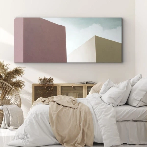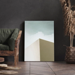 Obraz na płótnie - Minimalistyczna bryła architektoniczna na tle błękitnego nieba - 50x70cm - Geometria słonecznego lata - Nowoczesna dekoracja ścienna do salonu, kuchni i sypialni ARTTOR