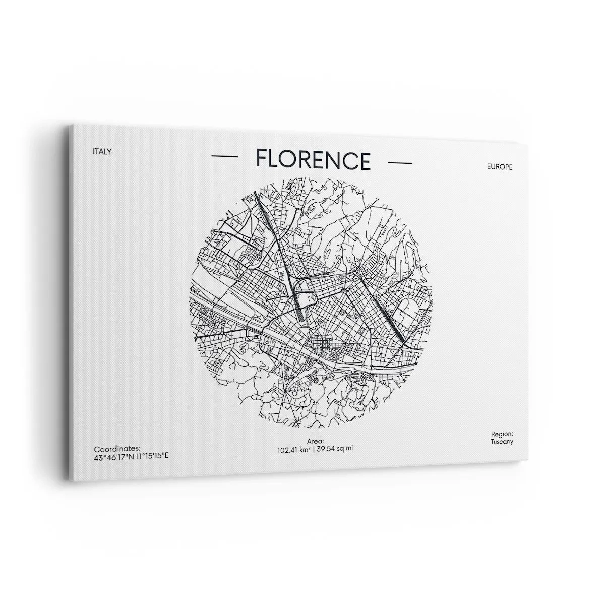 Obraz na płótnie - Mapa Florencji w minimalistycznym, czarno-białym stylu - 100x70cm - Anatomia Florencji - Nowoczesna dekoracja ścienna do salonu, kuchni i sypialni ARTTOR