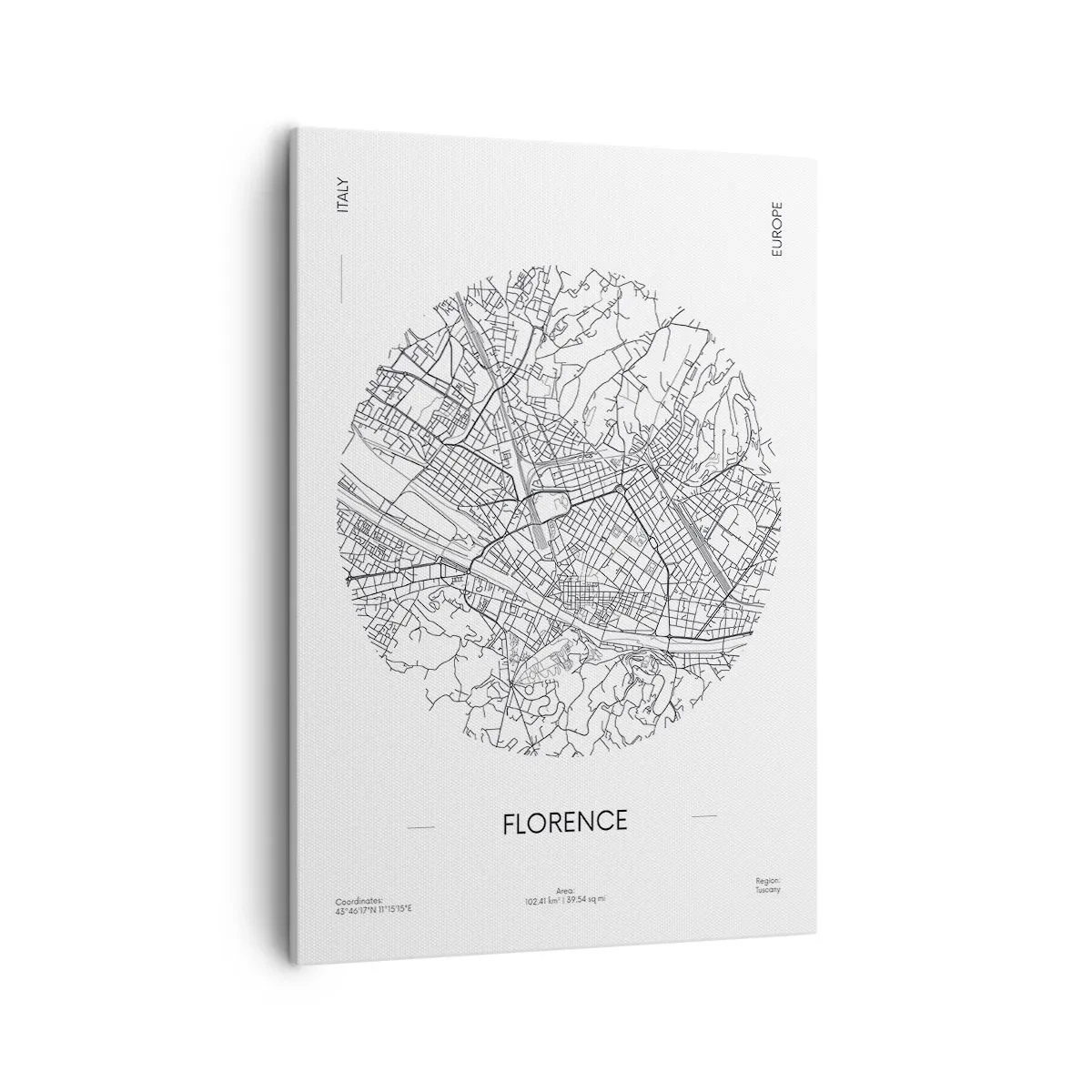 Obraz na płótnie - Minimalistyczna mapa Florencji w czarnych liniach na białym tle - 50x70cm - Anatomia Florencji - Nowoczesna dekoracja ścienna do salonu, kuchni i sypialni ARTTOR