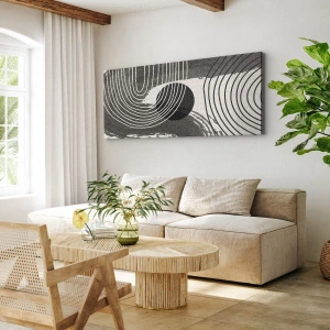 Obraz na płótnie - Geometryczne linie i owale w monochromatycznych odcieniach - 70x50cm - Owal zwycięża - Nowoczesna dekoracja ścienna do salonu i sypialni ARTTOR