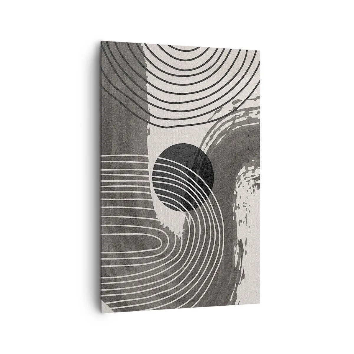 Obraz na płótnie - Geometryczne linie i owale w monochromatycznych odcieniach - 80x120cm - Owal zwycięża - Nowoczesna dekoracja ścienna do salonu i sypialni ARTTOR
