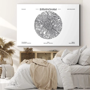 Obraz na płótnie - Minimalistyczna mapa Birmingham w czarno-białej kolorystyce z precyzyjnymi detalami - 100x70cm - Anatomia Birmingham - Nowoczesna dekoracja ścienna do salonu, kuchni i sypialni ARTTOR