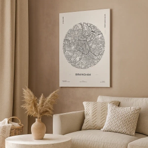 • Mapa, Birmingham, Anglia, Czarno-białe, Mapy świata, Miasta, Podróże, Typografia i Cytaty, Do biura, Do gabinetu, Do jadalni, Do przedpokoju, Do salonu, Do sypialni, Biały, Czarny, Czarnobiały, Pionowy