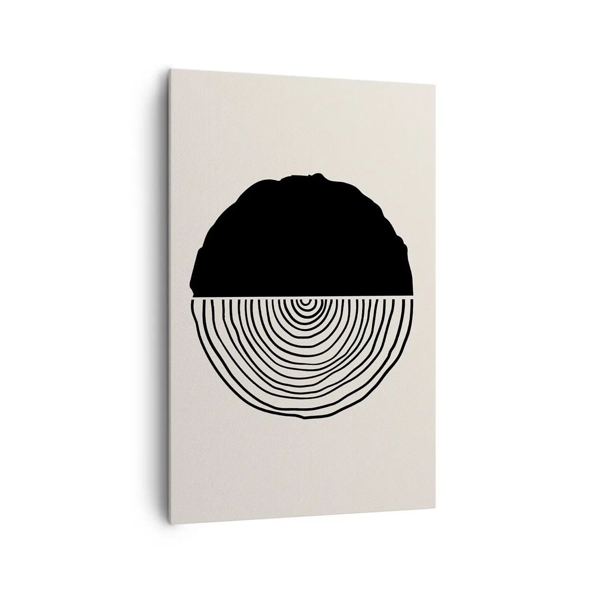 Obraz na płótnie - Abstrakcyjny czarno-biały motyw inspirowany przekrojem drewna z geometrycznym podziałem - 80x120cm - Pół na pół - Nowoczesna dekoracja ścienna do salonu i sypialni ARTTOR