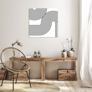 Obraz na płótnie - Minimalistyczna grafika czarnych linii na białym tle w geometrycznym układzie. - 50x70cm - Na zakręcie - Nowoczesna dekoracja ścienna do salonu, kuchni i sypialni ARTTOR