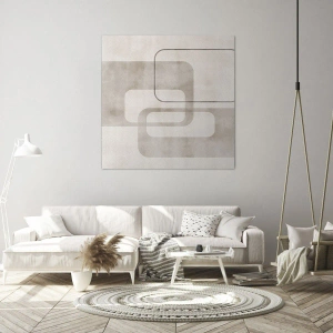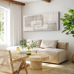 Motyw ten doskonale sprawdzi się w przestrzeniach takich jak salon, biuro czy sypialnia, dodając im minimalistycznego charakteru i klasy. Neutralna kolorystyka i geometryczna forma sprawiają, że obraz łatwo komponuje się z różnorodnymi stylami wnętrzarskimi, od skandynawskiego po industrialny. Obraz wprowadza do pomieszczenia harmonię, a jednocześnie jest unikalnym elementem dekoracyjnym.
