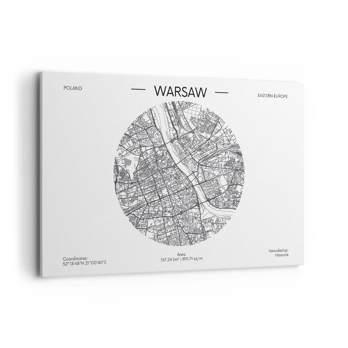 Obraz na płótnie - Mapa Warszawy w minimalistycznym stylu - 120x80cm - Anatomia Warszawy - Nowoczesna dekoracja ścienna do salonu, kuchni i sypialni ARTTOR