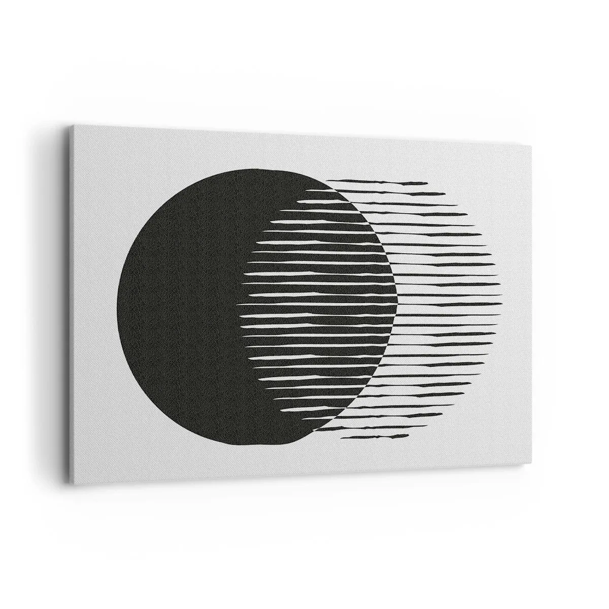 Obraz na płótnie - Dwa nakładające się koła z liniami w czerni i bieli - 100x70cm - Jego alter ego - Nowoczesna dekoracja ścienna do salonu, kuchni i sypialni ARTTOR
