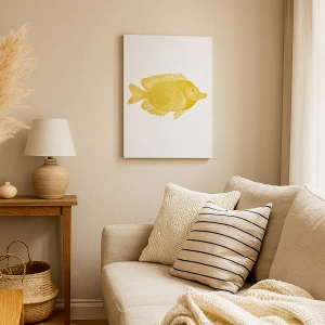 Dzieło "Złota ryba w stylu vintage na jasnym tle" sprawdzi się idealnie w przestrzeniach takich jak salon, sypialnia, biuro czy gabinet. Jego minimalistyczny design i delikatna kolorystyka sprawiają, że wprowadza do wnętrza spokój oraz wyważoną estetykę. To dekoracja, która może stać się zarówno centralnym punktem aranżacji, jak i subtelnym akcentem dodającym charakteru wnętrzu.