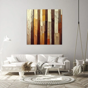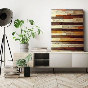 Obraz na płótnie - Geometryczna kompozycja w odcieniach drewna i złota - 120x80cm - Hymn leśnych drzew - Nowoczesna dekoracja ścienna do salonu, kuchni i sypialni ARTTOR