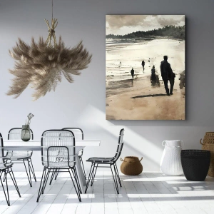 Obraz na płótnie - Malarska ilustracja spacerujących osób na plaży w stonowanych barwach - 50x70cm - Przywołani - Nowoczesna dekoracja ścienna do salonu, kuchni i sypialni ARTTOR