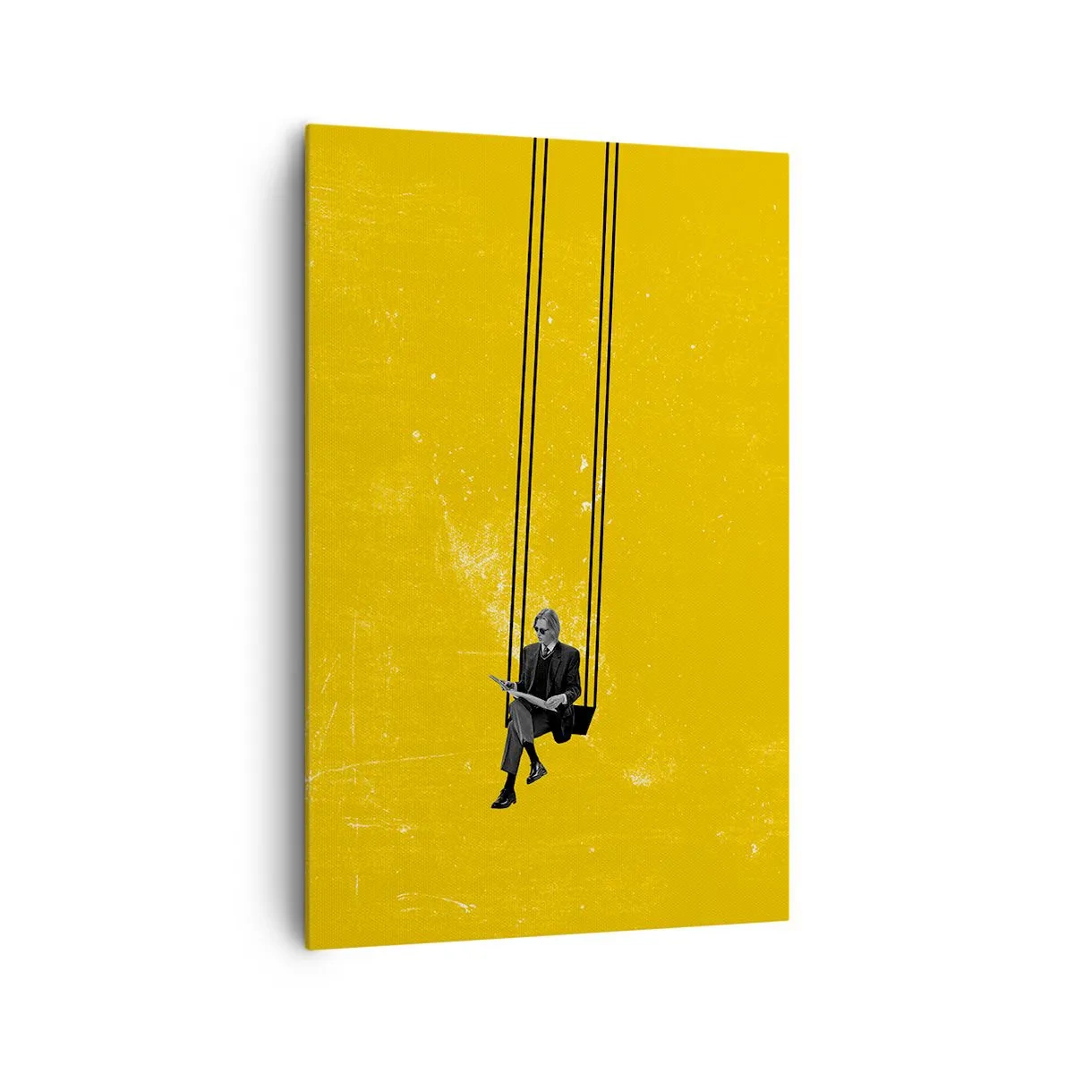 Obraz na płótnie - Osoba na huśtawce na tle intensywnej żółci - 80x120cm - Dzień jak co dzień - Nowoczesna dekoracja ścienna do salonu i sypialni ARTTOR