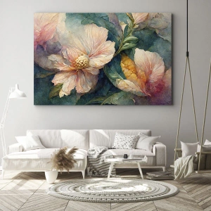 Obraz na płótnie - Delikatne kwiaty w pastelowych barwach - 70x100cm - Sama subtelność - Nowoczesna dekoracja ścienna do salonu i sypialni ARTTOR