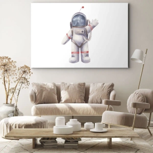 Obraz na płótnie - Akwarelowy astronauta w skafandrze kosmicznym machający ręką - 50x70cm - To na razie! - Nowoczesna dekoracja ścienna do salonu, kuchni i sypialni ARTTOR