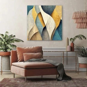 Obraz na płótnie - Abstrakcyjne fale w odcieniach niebieskiego i złota - 80x120cm - Rytm i falowanie - Nowoczesna dekoracja ścienna do salonu i sypialni ARTTOR