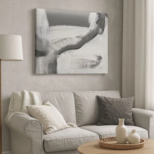 Obraz na płótnie „Zdecydowanym ruchem” to nowoczesna abstrakcja, która łączy odcienie szarości i bieli w dynamicznej i artystycznej kompozycji. Wyraziste linie i subtelne przejścia barw nadają mu wyjątkowy charakter, który doskonale pasuje do stylowych wnętrz.