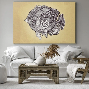 Obraz na płótnie - Dekoracyjna ryba w stylu rysunku z wzorami - 100x70cm - Z oceanu ornamentów - Nowoczesna dekoracja ścienna do salonu, kuchni i sypialni ARTTOR
