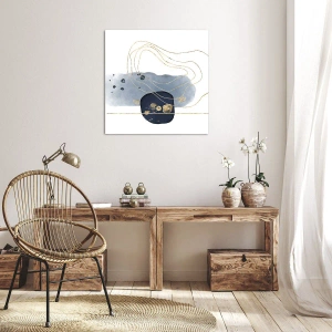 Obraz na płótnie - Abstrakcja w odcieniach niebieskiego i złotego - 140x50cm - Niebiesko-złota fantazja - Nowoczesna dekoracja ścienna do salonu i sypialni ARTTOR