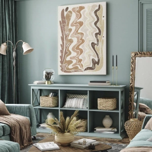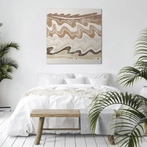 Obraz na płótnie - Organiczna kompozycja falistych linii w ciepłych, ziemistych odcieniach beżu i brązu - 50x70cm - Dobra energia – dobre emocje - Nowoczesna dekoracja ścienna do salonu, kuchni i sypialni ARTTOR