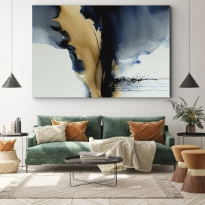 Obraz na płótnie - Abstrakcyjna kompozycja w odcieniach granatu i złota - 120x80cm - Za zasłoną - Nowoczesna dekoracja ścienna do salonu, kuchni i sypialni ARTTOR