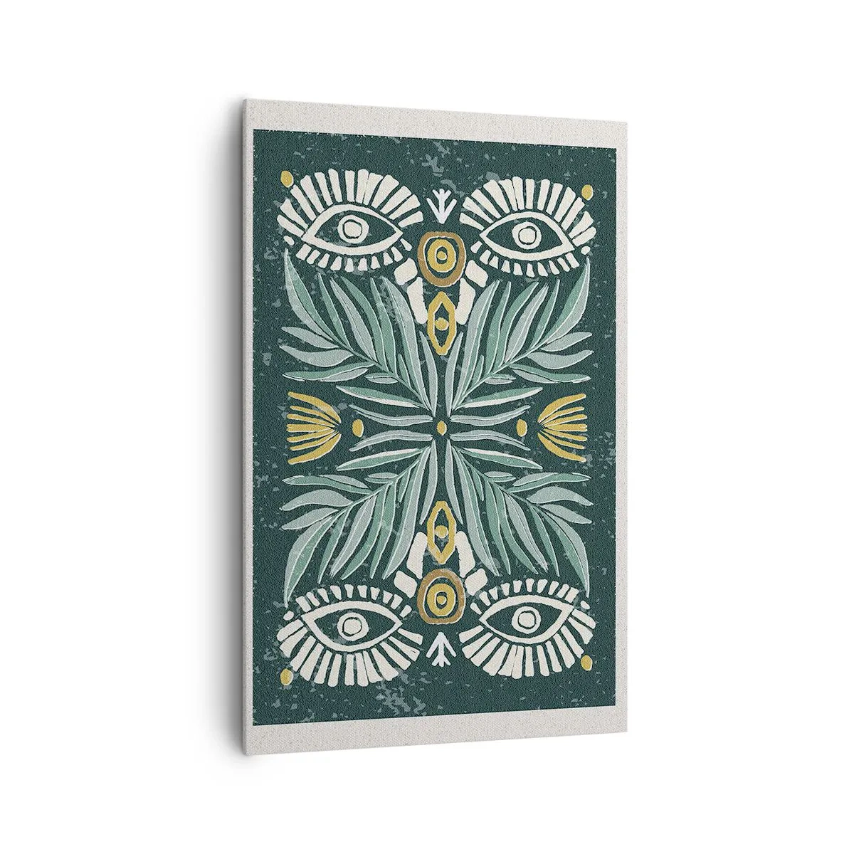 Obraz na płótnie - Symetryczny wzór roślinny na zielonym tle - 80x120cm - Jak ludowa wycinanka - Nowoczesna dekoracja ścienna do salonu i sypialni ARTTOR