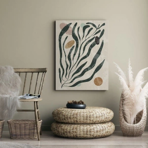 Obraz na płótnie - Organiczne linie i kształty w zieleni i beżu - 80x120cm - Pośród zieleni - Nowoczesna dekoracja ścienna do salonu i sypialni ARTTOR