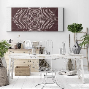 Obraz na płótnie - Symetryczne fale w białych liniach na brązowym tle - 160x50cm - Przestrzeń mówi - Nowoczesna dekoracja ścienna do salonu i sypialni ARTTOR