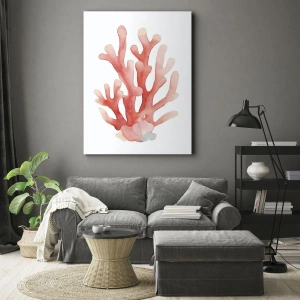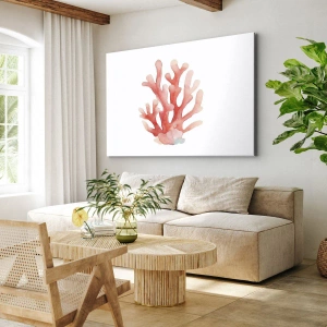 Obraz na płótnie - Delikatna akwarela przedstawiająca czerwony koral - 50x70cm - Koral koloru koralowego - Nowoczesna dekoracja ścienna do salonu, kuchni i sypialni ARTTOR