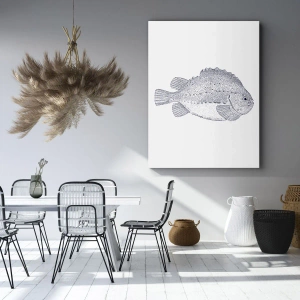 Obraz na płótnie - Czarno-biały rysunek ryby na białym tle w stylu minimalistycznym - 70x100cm - Do albumu przyrodnika - Nowoczesna dekoracja ścienna do salonu i sypialni ARTTOR