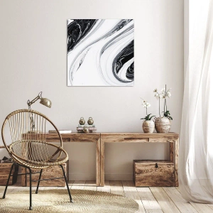 Obraz na płótnie - Czarno-biała abstrakcja z dynamicznymi liniami i wirami - 160x50cm - Połączenie przeciwieństw - Nowoczesna dekoracja ścienna do salonu i sypialni ARTTOR