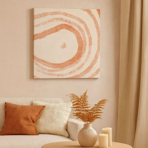 "Koralowe kręgi – kompozycja" to dzieło, które wprowadza do wnętrz subtelność i piękno abstrakcji. Idealny wybór dla tych, którzy szukają dekoracji podkreślających harmonię i ciepło w ich przestrzeni.