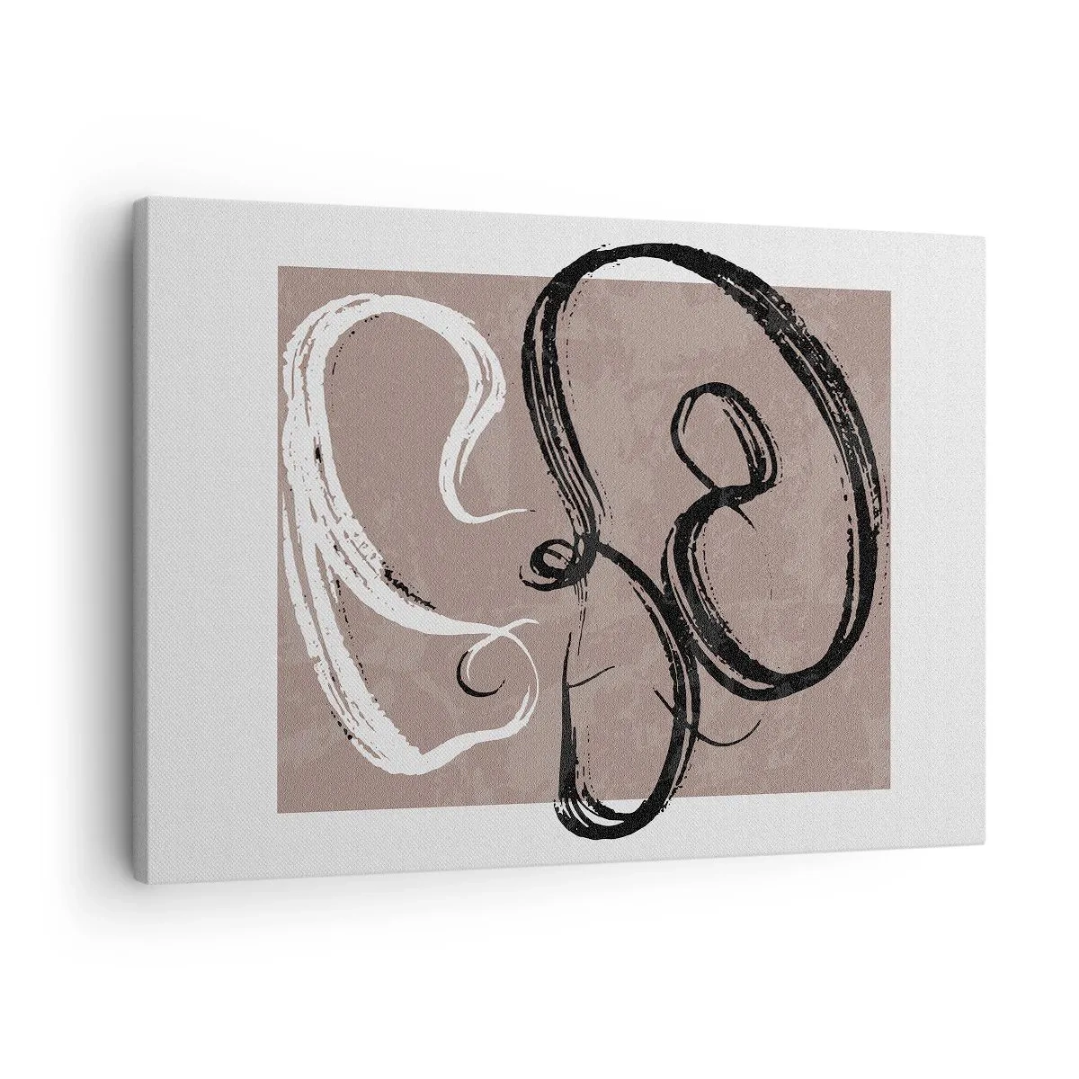 Obraz na płótnie - Czarno-biała abstrakcja na beżowym tle - 70x50cm - Kompozycja – poszukiwanie pełni - Nowoczesna dekoracja ścienna do salonu i sypialni ARTTOR