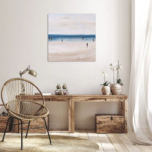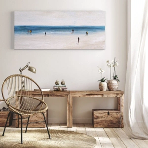 Obraz na płótnie - Plaża z ludźmi na tle spokojnego morza - 120x80cm - Naturalna potrzeba - Nowoczesna dekoracja ścienna do salonu, kuchni i sypialni ARTTOR