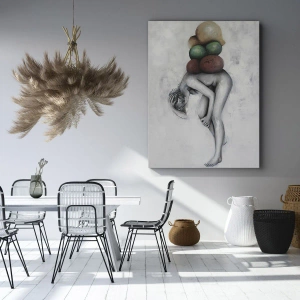 Obraz na płótnie - Surrealistyczny obraz nagiej postaci dźwigającej kolorowe kule - 70x100cm - Ciężar życia - Nowoczesna dekoracja ścienna do salonu i sypialni ARTTOR