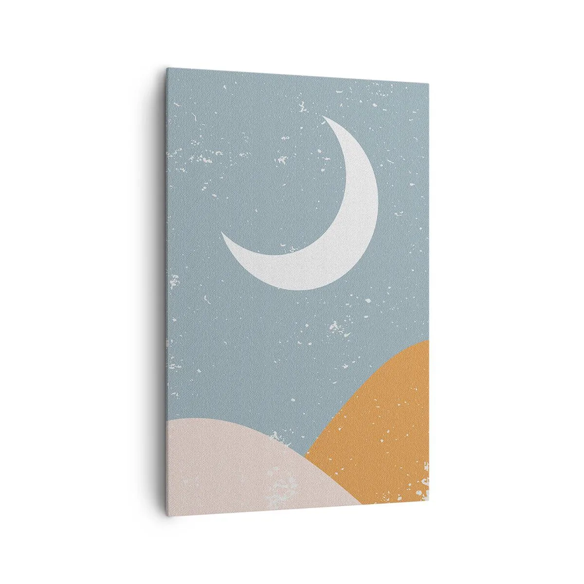 Obraz na płótnie - Półksiężyc na błękitnym tle z abstrakcyjnymi wzgórzami - 80x120cm - Cud wielu nocy - Nowoczesna dekoracja ścienna do salonu i sypialni ARTTOR