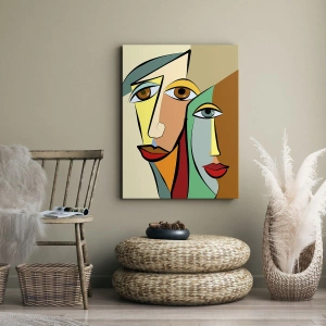 Obraz na płótnie - Abstrakcyjne portrety dwóch twarzy w stylu kubistycznym - 70x100cm - Kubistyczna para - Nowoczesna dekoracja ścienna do salonu i sypialni ARTTOR