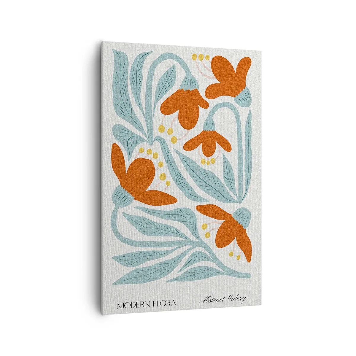 Obraz na płótnie - Delikatne pomarańczowe kwiaty i liście w stylu skandynawskim na jasnym tle - 80x120cm - Ku ziemi, ku słońcu - Nowoczesna dekoracja ścienna do salonu i sypialni ARTTOR