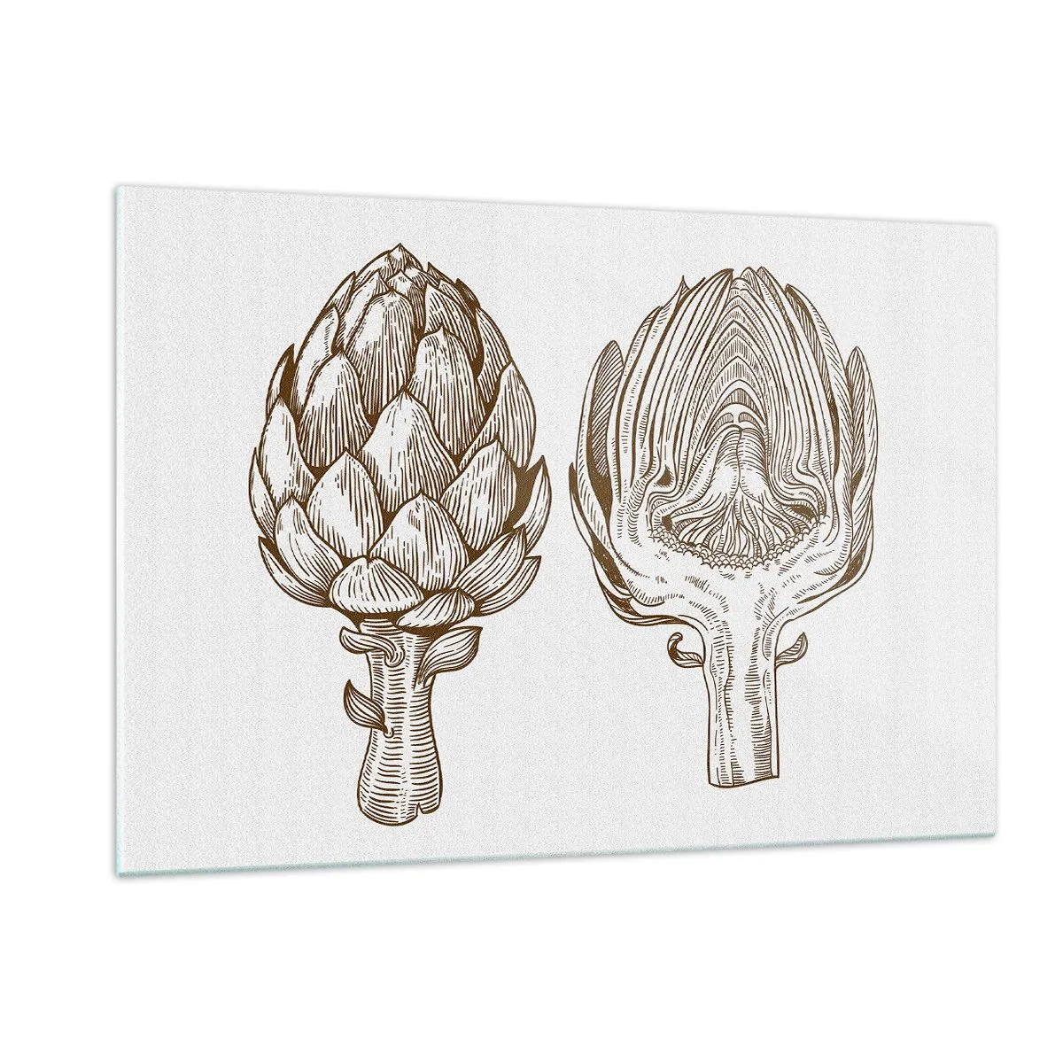 Obraz na szkle - Botaniczny rysunek karczocha w całości i w przekroju - 120x80cm - Lekcja anatomii - Nowoczesna dekoracja ścienna do salonu, kuchni i sypialni ARTTOR