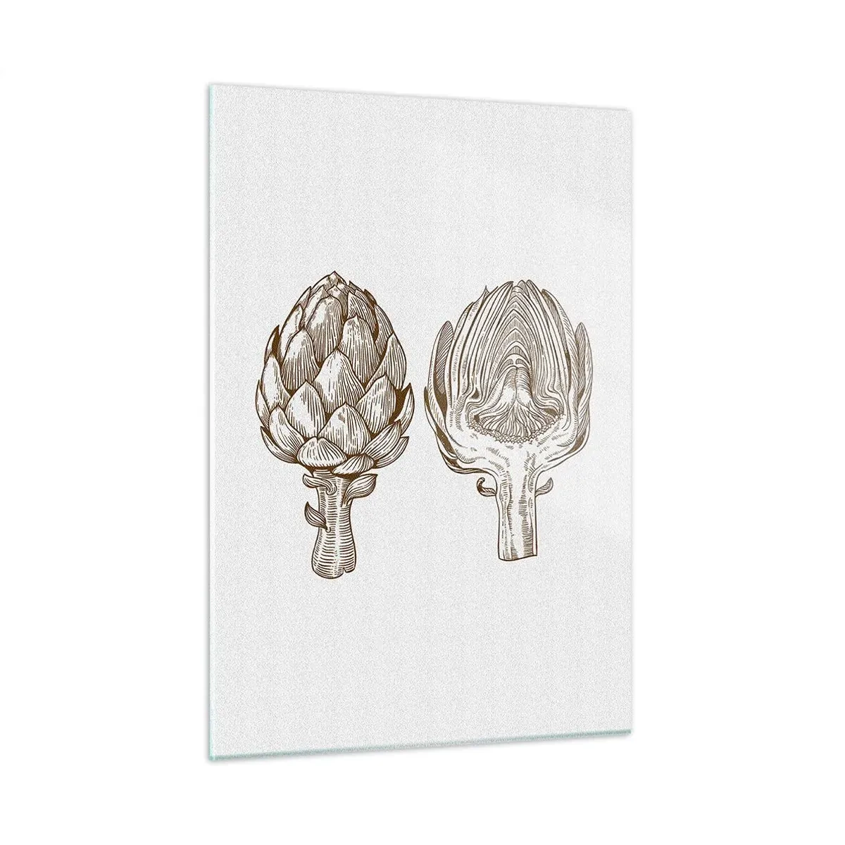 Obraz na szkle - Botaniczny rysunek karczocha w całości i w przekroju - 50x70cm - Lekcja anatomii - Nowoczesna dekoracja ścienna do salonu, kuchni i sypialni ARTTOR
