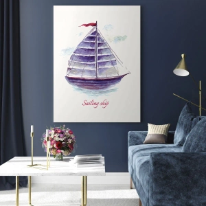 Obraz na szkle - Akwarelowy żaglowiec z napisem Sailing ship - 120x80cm - Pełnych żagli i spokojnej wody - Nowoczesna dekoracja ścienna do salonu, kuchni i sypialni ARTTOR