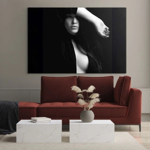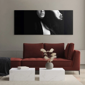 Obraz na szkle - Stylowy portret kobiety w czarno-białej tonacji - 160x50cm - Szkoła uwodzenia - Nowoczesna dekoracja ścienna do salonu i sypialni ARTTOR
