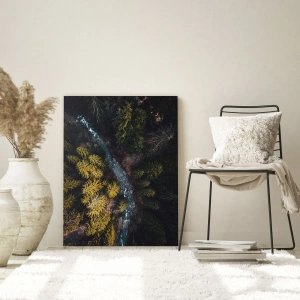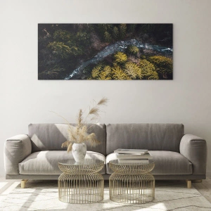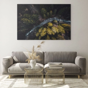 Obraz na szkle - Widok z góry na las z wijącą się rzeką - 80x120cm - Szybko, coraz szybciej - Nowoczesna dekoracja ścienna do salonu i sypialni ARTTOR