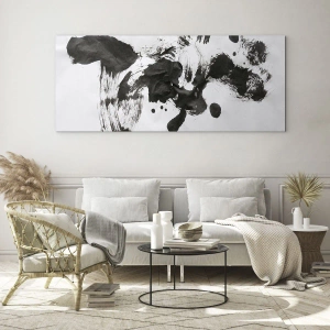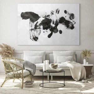 Obraz na szkle - Abstrakcyjna kompozycja czarnych plam na białym tle - 70x100cm - W szaleństwie metoda? - Nowoczesna dekoracja ścienna do salonu i sypialni ARTTOR