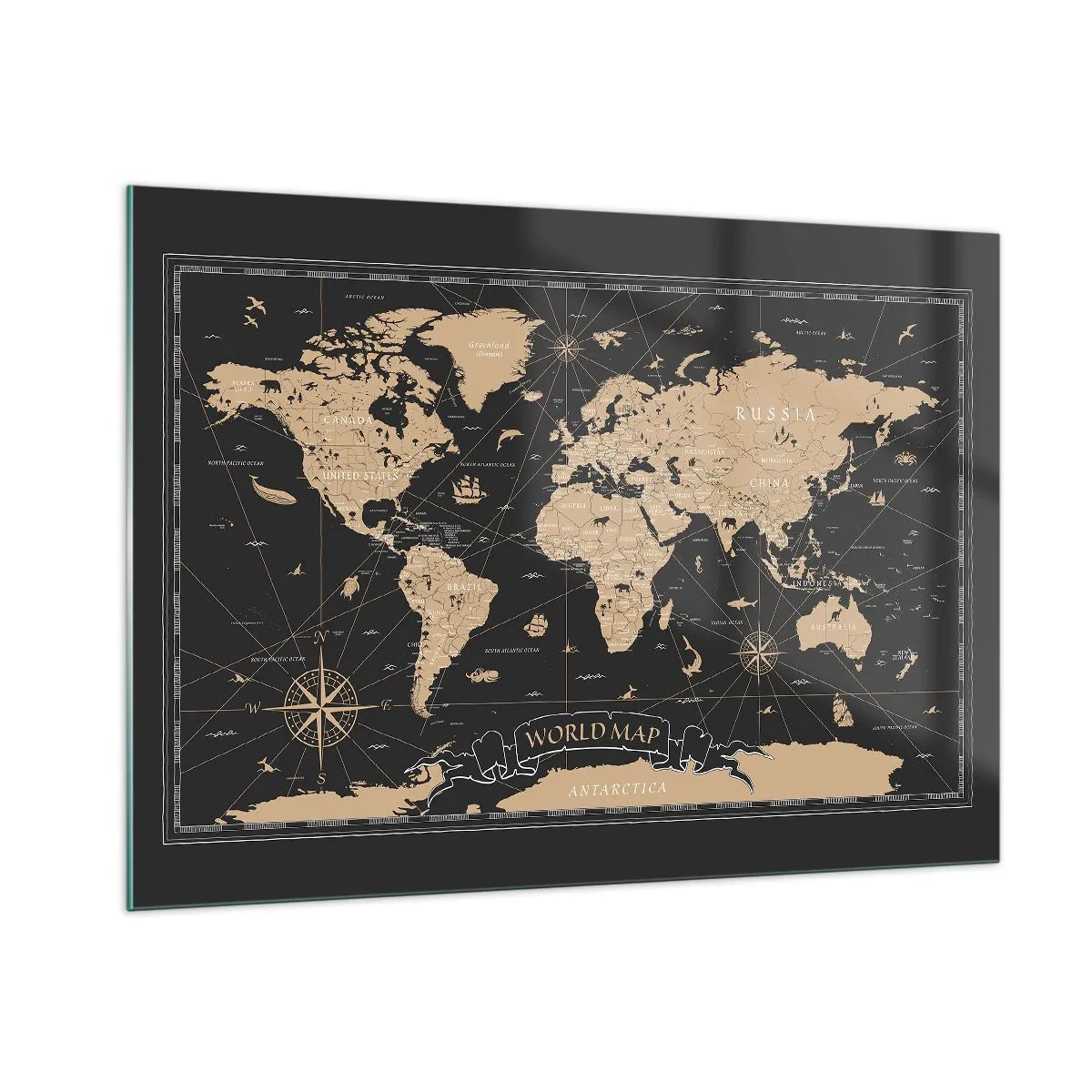 Obraz na szkle - Stylizowana mapa świata w odcieniach beżu i czerni - 100x70cm - Granice mojego świata - Nowoczesna dekoracja ścienna do salonu, kuchni i sypialni ARTTOR