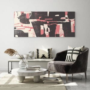Obraz na szkle - Abstrakcyjna kompozycja w odcieniach różu i brązu - 140x50cm - Cały ten zgiełk - Nowoczesna dekoracja ścienna do salonu i sypialni ARTTOR