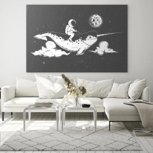 Obraz na szkle - Astronauta lecący na narwalu w kosmicznej scenerii - 50x70cm - Kosmiczny jeździec - Nowoczesna dekoracja ścienna do salonu, kuchni i sypialni ARTTOR