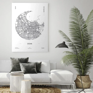Obraz na ścianę - Anatomia Dohy - Graficzna mapa Dohy w czarno-białym stylu minimalistycznym