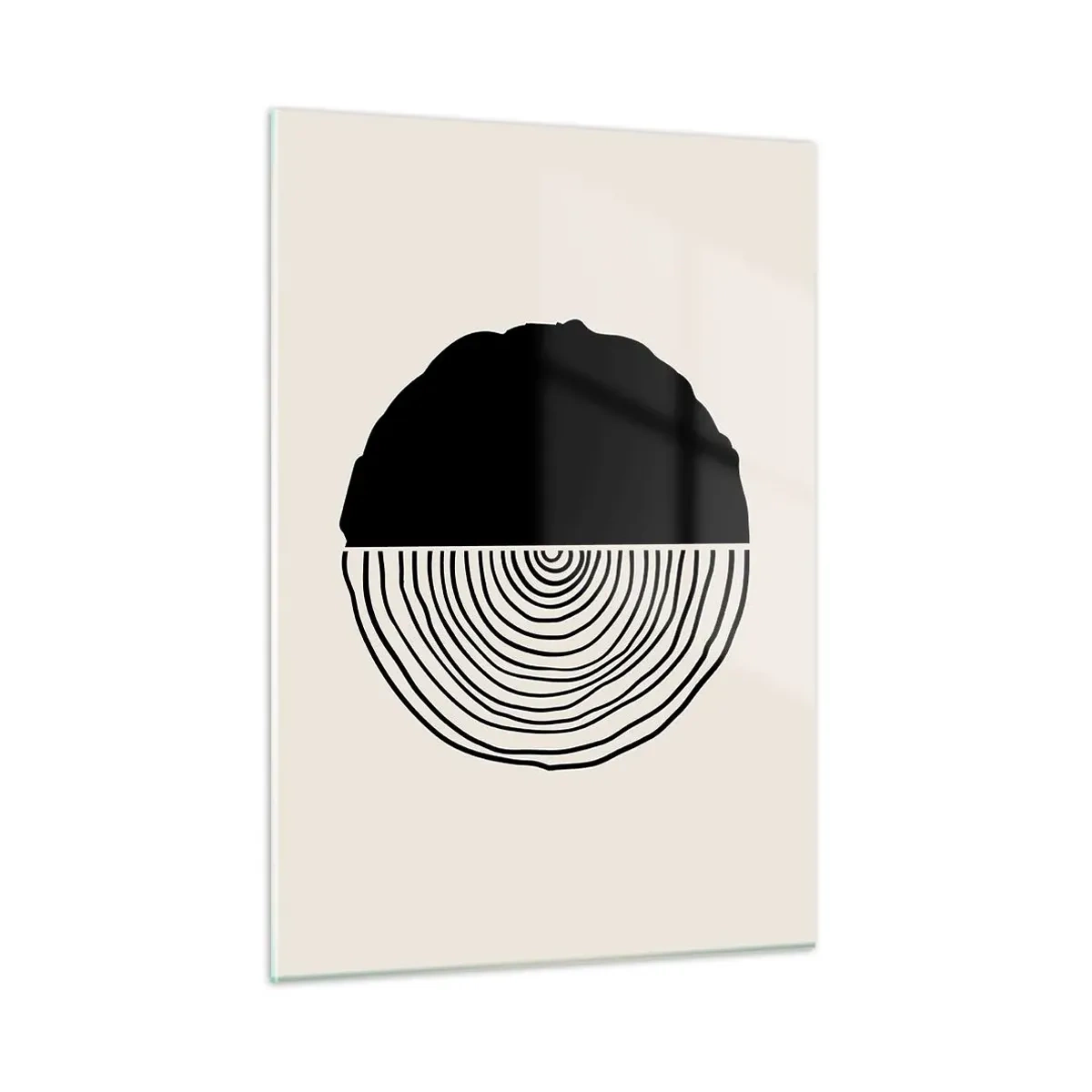 Obraz na szkle - Minimalistyczna grafika przekroju pnia drzewa w dwóch połowach - 50x70cm - Pół na pół - Nowoczesna dekoracja ścienna do salonu, kuchni i sypialni ARTTOR