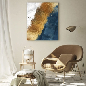 Obraz na szkle - Abstrakcyjna kompozycja w odcieniach złota, błękitu i bieli - 140x50cm - Barwy lata - Nowoczesna dekoracja ścienna do salonu i sypialni ARTTOR