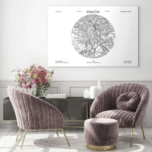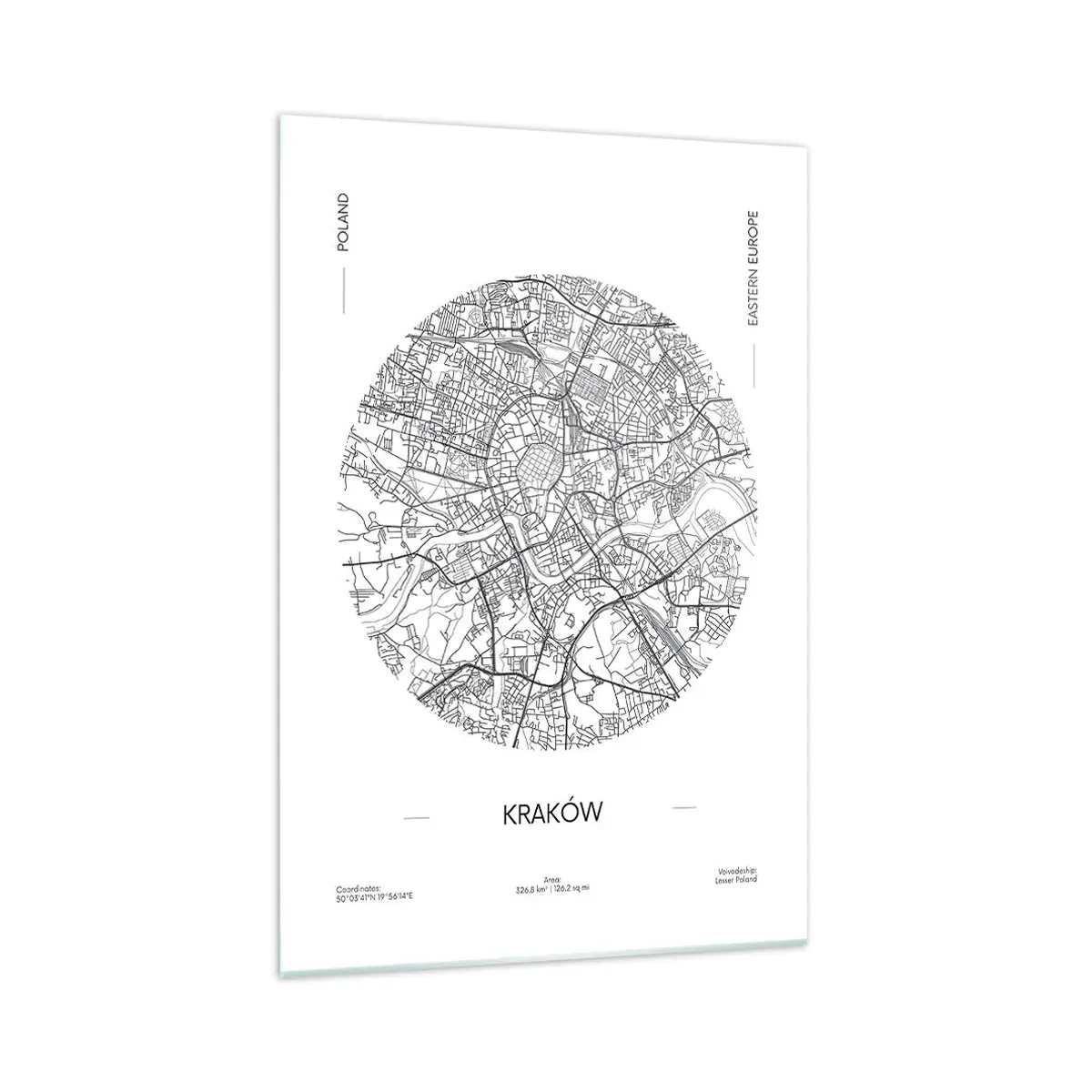 Obraz na szkle - Mapa Krakowa w minimalistycznym stylu - 70x100cm - Anatomia Krakowa - Nowoczesna dekoracja ścienna do salonu i sypialni ARTTOR